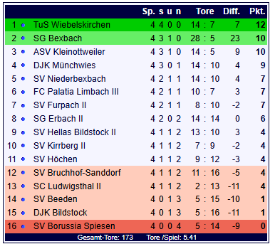 Tolle Entwicklung in Niederbexbach. Ich denke mit dem Abstieg wird man dieses Jahr auf keinen Fall etwas zu tun haben. Sicherlich ist die Klasse auch etwas schwächer als im Vorjahr..