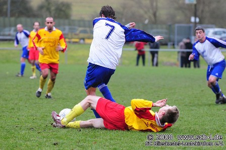 Zum ersten Auswärtspiel im Jahre 2008 musste der SC die Reise nach Frauenberg zum FC Habkirchen antreten. Auf schwer zu bespielendem Platz, der auch durch das Vorspiel der zweiten Mannschaft schon arg in Mitleidenschaft gezogen war taten sich beide Mannschaften zunächst sichtlich schwer im Spielaufbau und der böige Wind tat sein übriges, dass der Ball nur selten in gefährliche Tornähe kam. Jeweils eine Chance auf beiden Seiten in der Anfangsphase waren zunächst die einzigen Höhepunkte. Im weiteren Verlauf der ersten Halbzeit spielte sich die Partie überwiegend im Mittelfeld ab und nur selten sah man Kombinationen die zur Torchancen führten. Ein Weckruf für den SC dann in der 38. Minute als SC-Schlussmann Robert Harder den SC mit einem tollen Reflex per Fuß vor dem Rückstand bewahrte. Zu Pause blieb es dann beim Leistungsgerechten 0:0-Unentschieden.