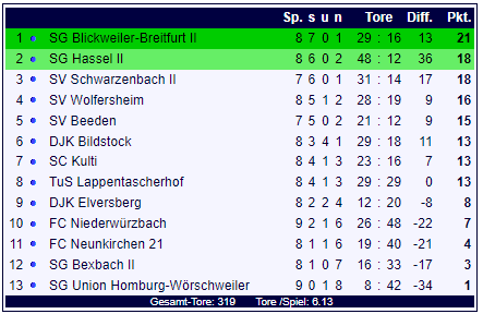 Kreisliga A Bliestal, 12. Spieltag