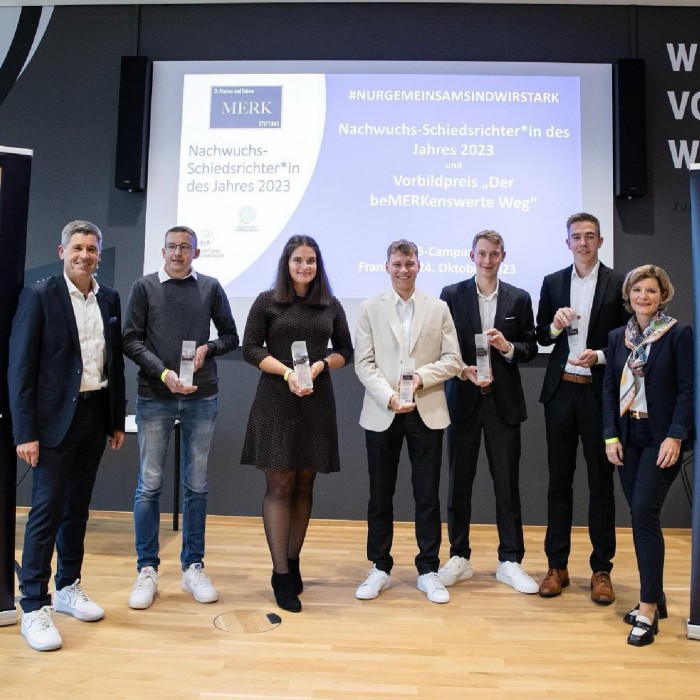 "Wir zeichnen heute vorbildliche und tolle junge Menschen aus", betonte Dr. Markus Merk zu Beginn der Ehrungszeremonie auf dem DFB-Campus in Frankfurt, der die Laudatio für den ersten Preisträger Ben Henry Uhrig in diesem Jahr auch persönlich übernahm. Er schilderte unter anderem, wie er den Preisträger vor ein paar Monaten kennenlernte. Das Finale um die Deutsche Meisterschaft am 23. April zwischen der U 19 des 1. FSV Mainz 05 und Borussia Dortmund, in dem das Juniorenteam der Mainzer mit 4:2 nach Verlängerung vor knapp 16.000 Zuschauern in der Mainzer Bundesligaarena siegte, war ein einziges Spektakel.